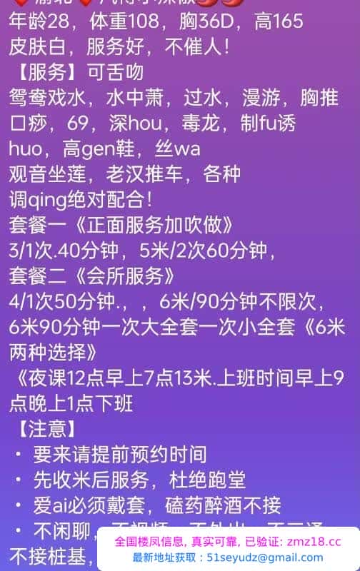 ⚠️ 本站为信息分享平台,并不对寻欢经历负责,请注意个人防范。凡是有要求路费/上门/红包/定金/保证金/照片验证/视频验证/提前付费等类似行为的都是骗子,同时也请注意任何形式的推荐办卡行为、引导下载APP行为,请勿上当受骗。碰到有问题的信息,请及时举报给我们删除信息。如果发布的信息涉及个人隐私,也请及时举报,我们会核实后第一时间处理。
